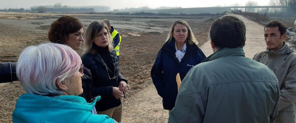 La presidenta de la Confederación Hidrográfica del Ebro (Ministerio para la Transición Ecológica y el Reto Demográfico), María Dolores Pascual; la delegada del Gobierno en La Rioja, María Marrodán, la consejera de Agricultura, Ganadería, Mundo Rural, Territorio y Población del Gobierno de La Rioja, Eva Hita, y representantes del Ayuntamiento de Alfaro han visitado hoy, en Alfaro, algunas de las actuaciones de emergencia de la fase 1 por las crecidas del Ebro en La Rioja.